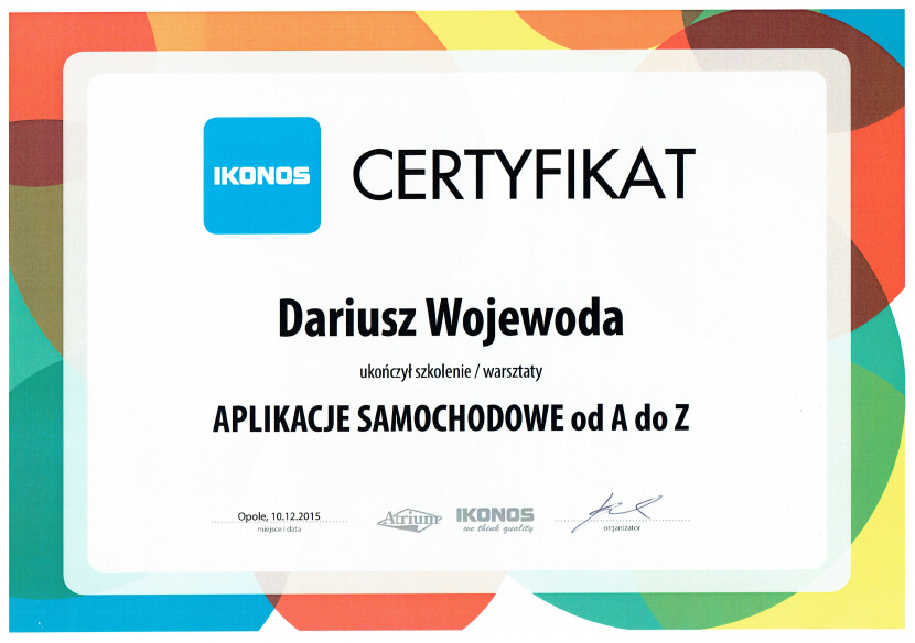 Certyfikat “Aplikacje samochodowe od A do Z”